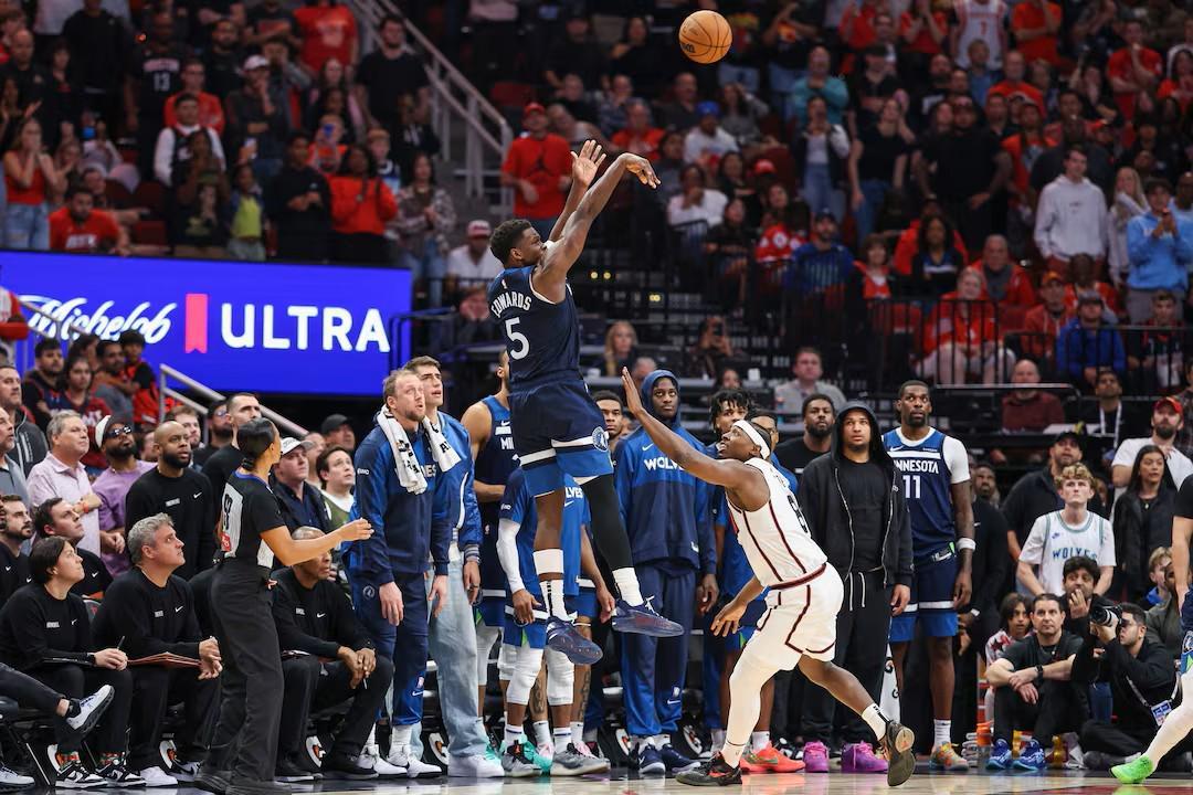 本赛季至今,爱德华兹场均能够得到28.9分5篮板3.8助攻1.3抢断0.8盖帽,投篮命中率50%,三分命中率40.9%。